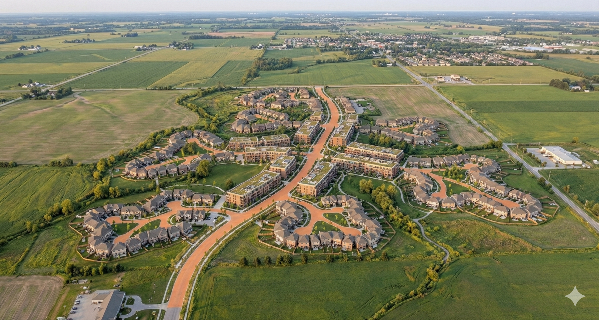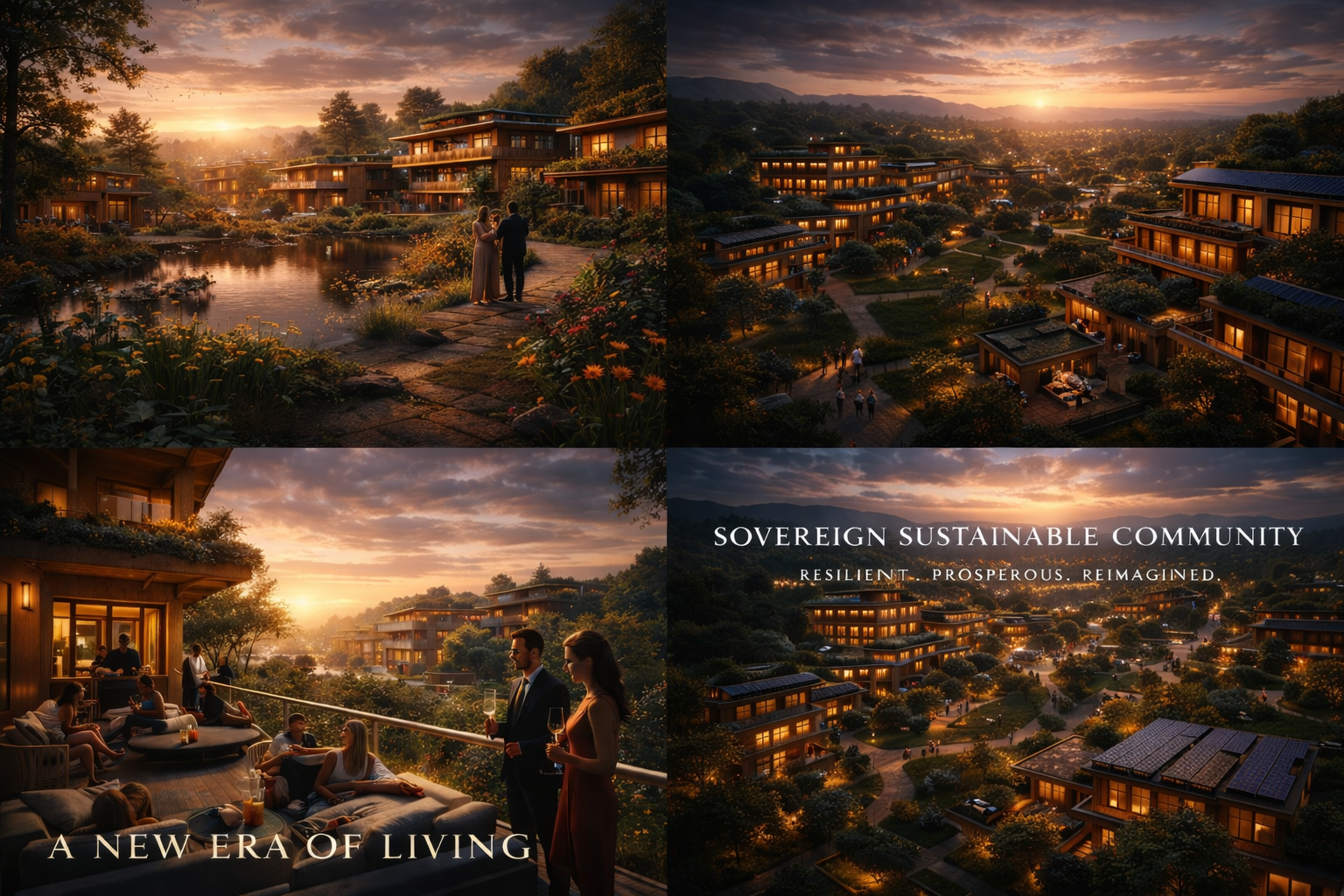 The eCOLOGY Village is a 259-acre, self-sustaining "living organism" located in Ontario, comprising seven interconnected properties (37 acres each). It reimagines the future of housing by merging intergenerational co-living, advanced care, and nomadic entrepreneurship into a single, energy-positive ecosystem.