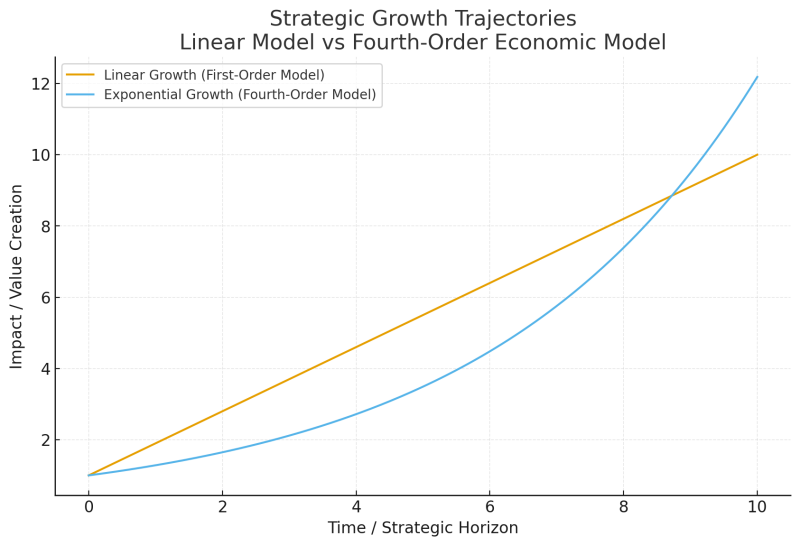 • Fourth-order systemic compounding (networked innovation, institutional lift)