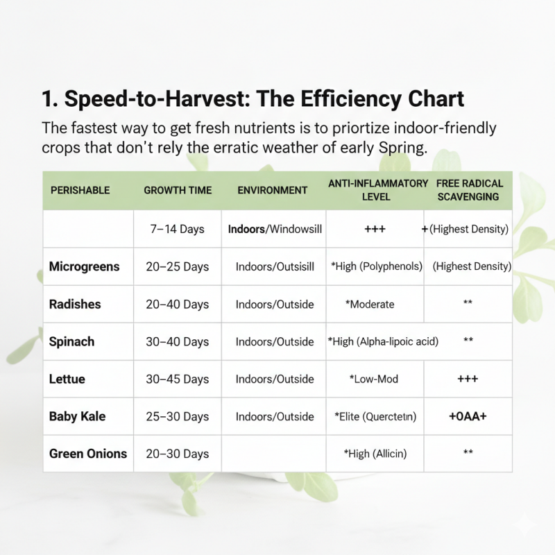 The fastest way to get fresh nutrients is to prioritize indoor-friendly crops that don't rely on the erratic weather of early Spring.