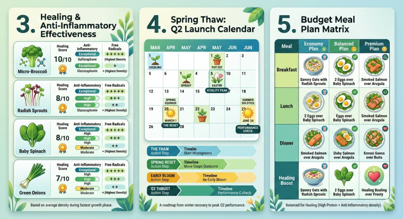 Strategic Goal: Provide structured, achievable meal plans optimized for healing (high protein + high anti-inflammatory density) across three financial tiers. This infographic illustrates how to incorporate these fast-growing perishables into your daily routine.